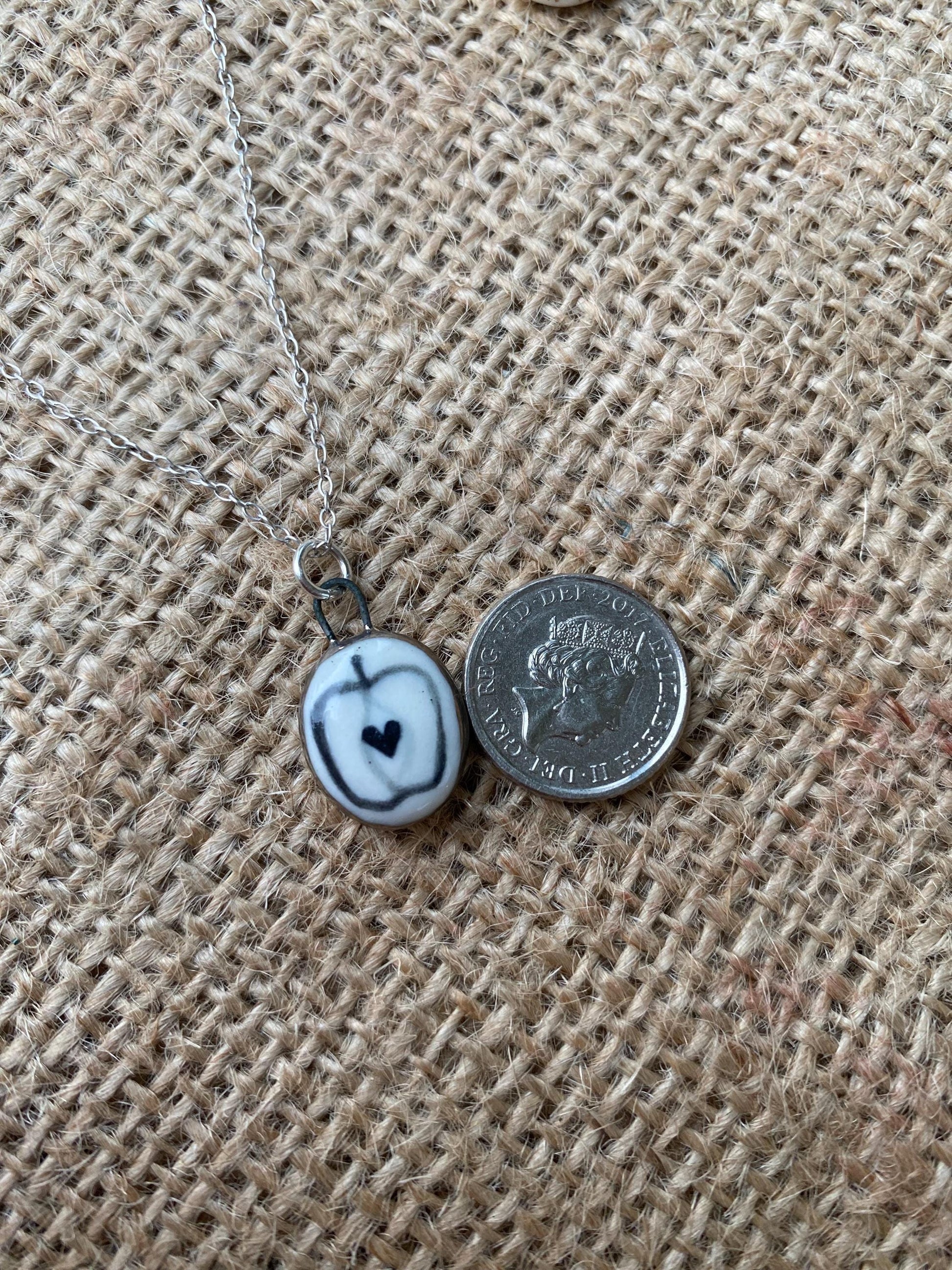 Hand-Sculpted Porcelain Apple Pendant: 24k Platinum Lustre Ceramic Necklace Charm