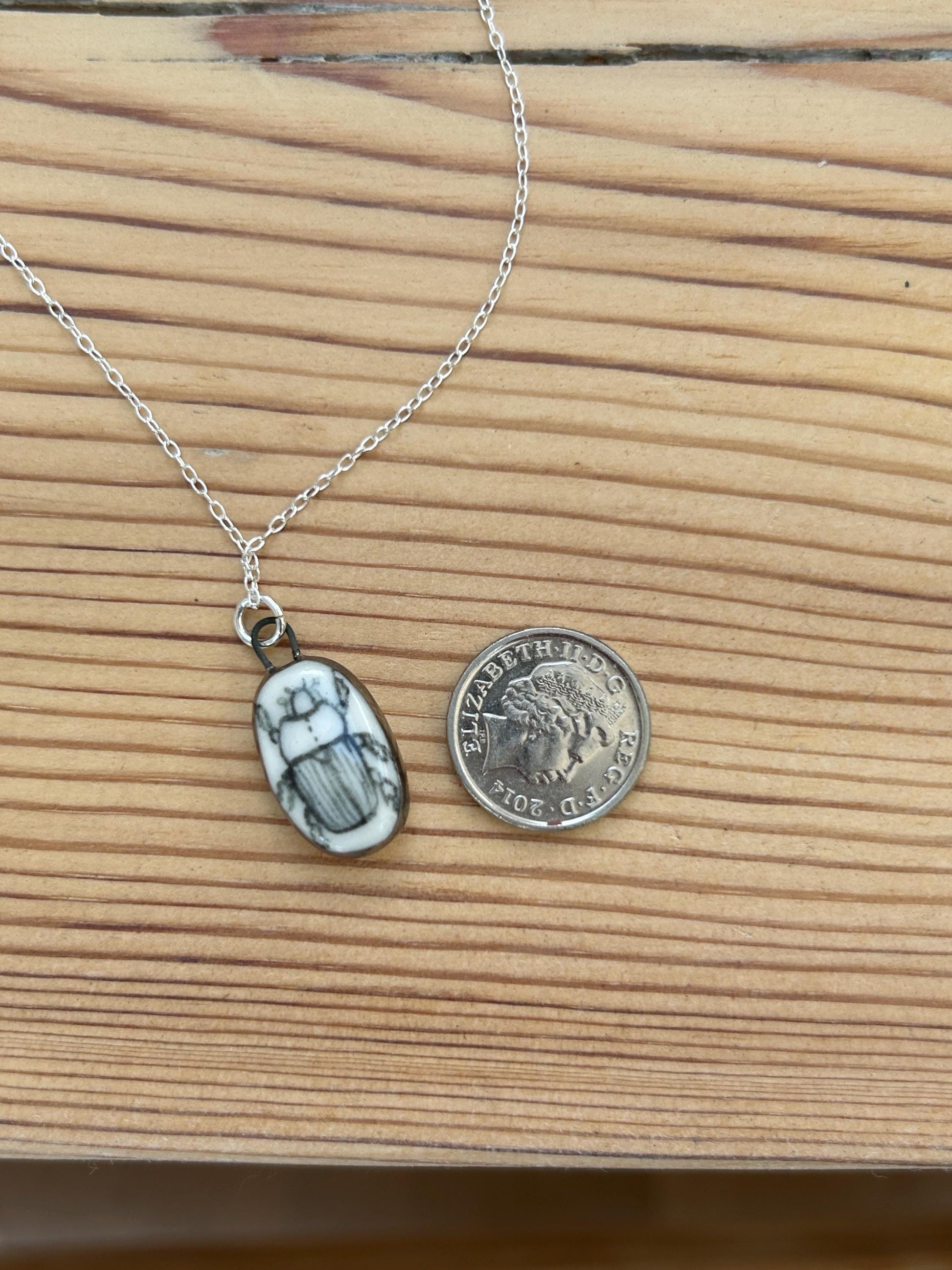 Hand-Sculpted Porcelain Beetle Pendant: Platinum Lustre Ceramic Necklace Charm