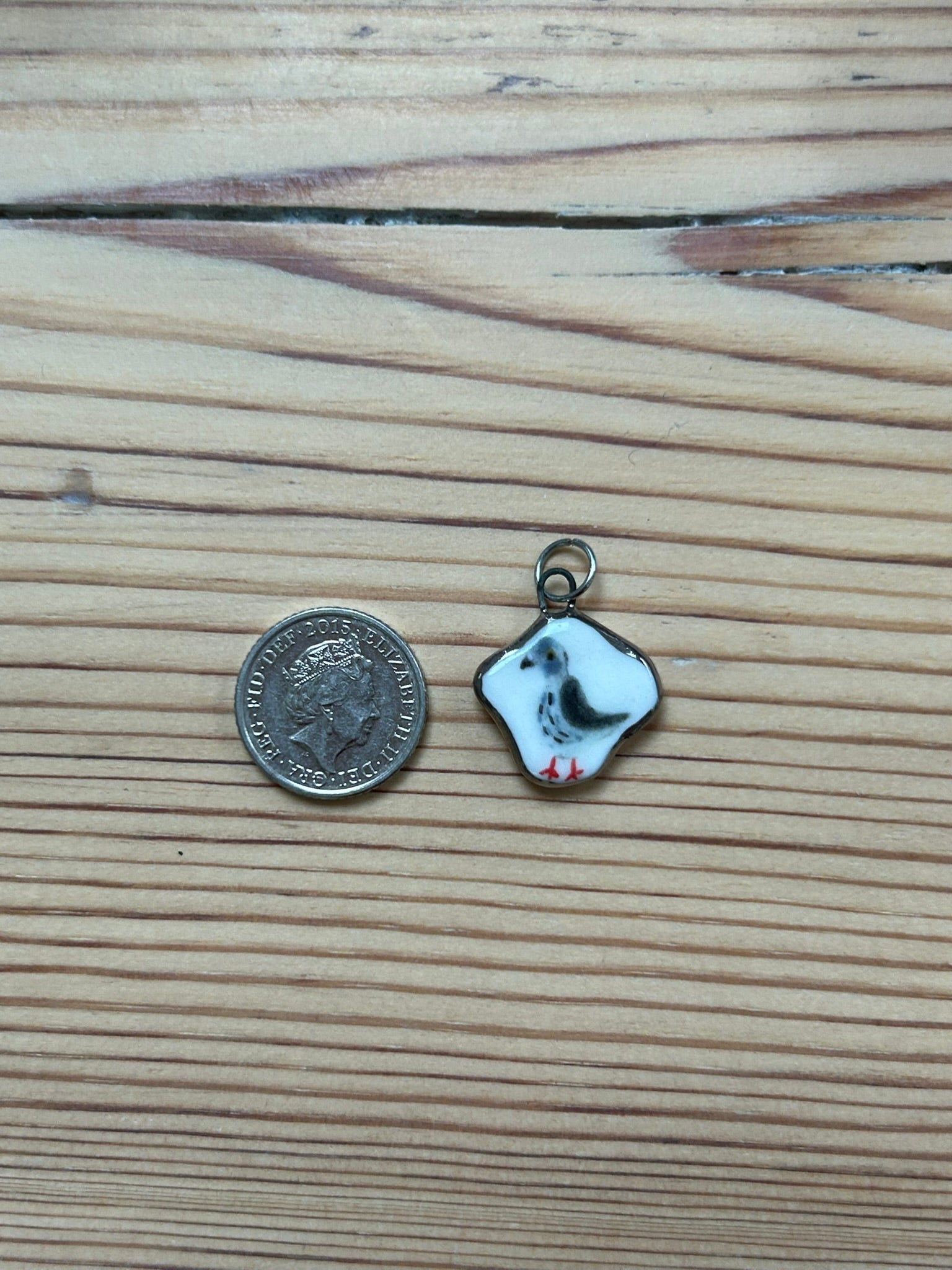Hand-Sculpted Porcelain Pigeon Pendant: Platinum Lustre Ceramic Necklace Charm
