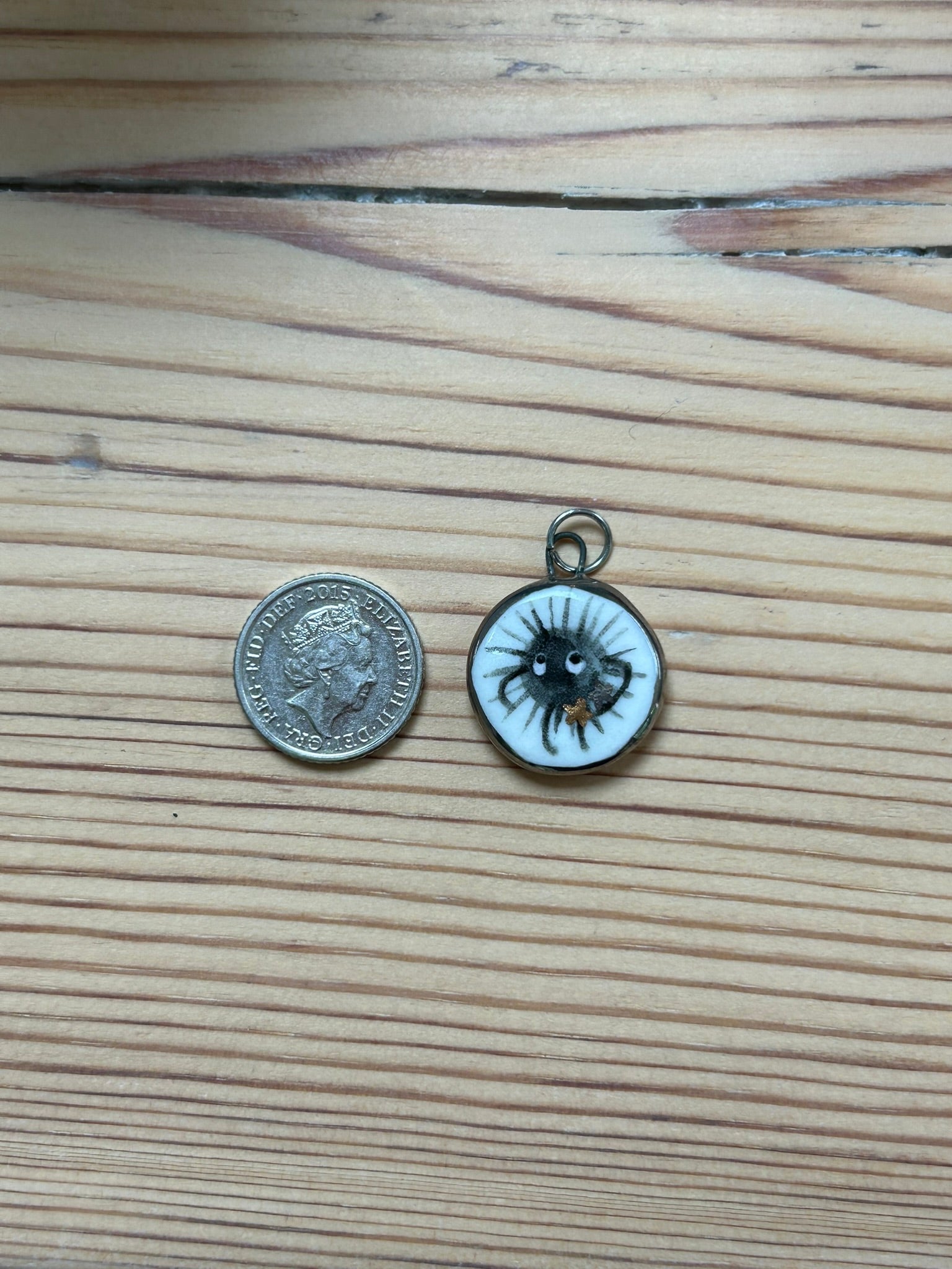 The pendant is hand sculpted with porcelain clay, hand-painted with underglaze, dipped in a transparent glaze and finished with a platinum lustre which goes on in a third firing.