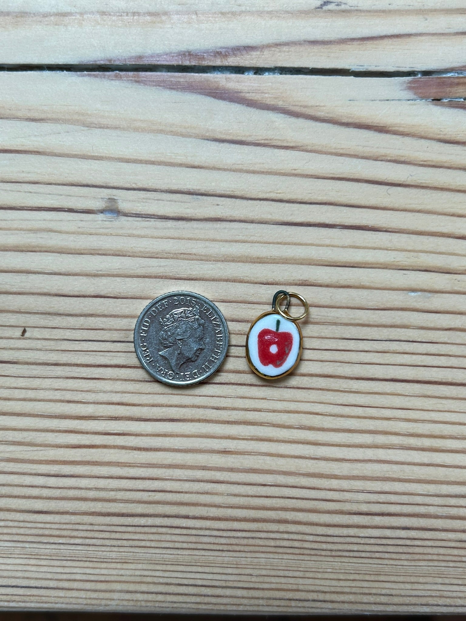 Hand-Sculpted Porcelain Apple Pendant: 24k Gold Lustre Ceramic Necklace Charm