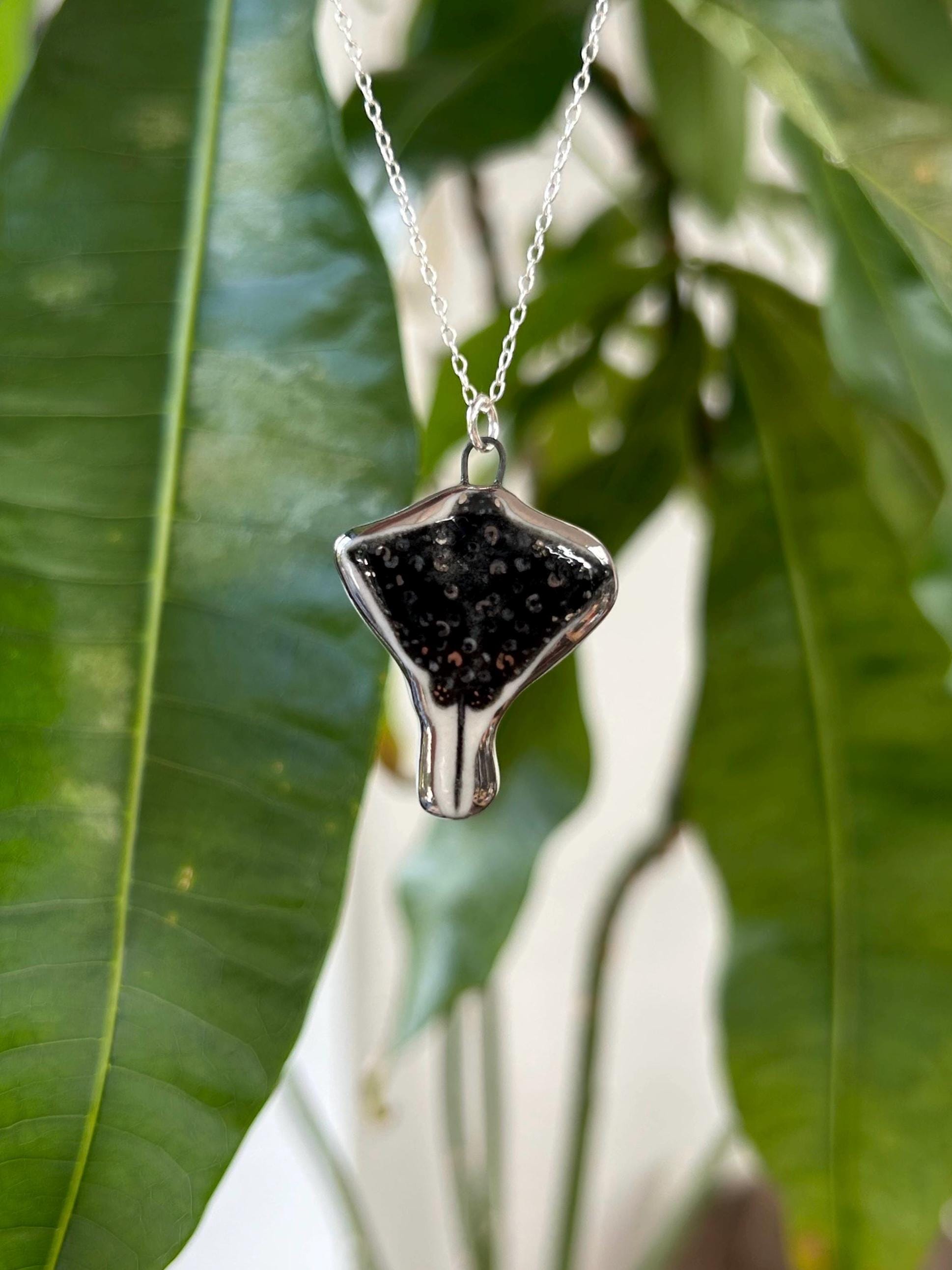 Hand-Sculpted Porcelain Stingray Pendant: Platinum Lustre Ceramic Necklace Charm